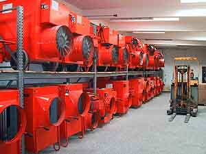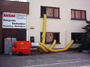 Zum Beispiel Warmlufterzeuger von Heylo, Typenreihe K (Öl) mit Schornstein-Anschluß.